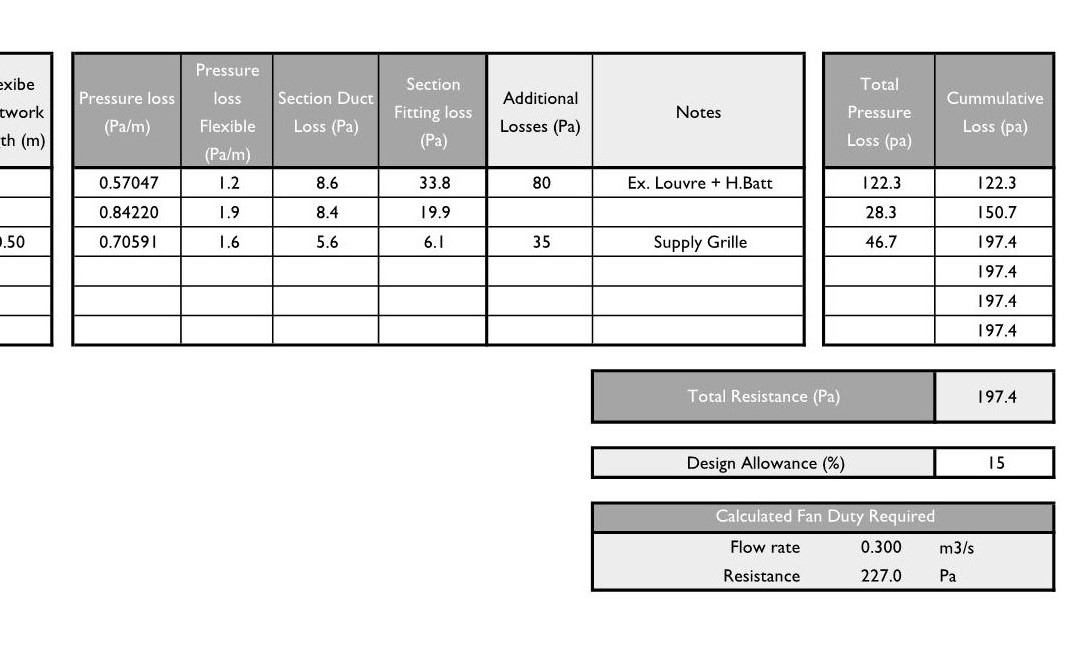 The spreadsheet can be used to select appropriate duct sizes for each section of your system. Thus making the system ventilation system sizing a swift and easy process.